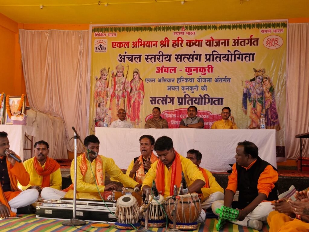 कुनकुरी: संस्कार और शिक्षा के माध्यम से ग्रामीण क्षेत्रों में अलख जगाने वाले ‘एकल अभियान’ द्वारा आज कुनकुरी मंदिर प्रांगण में अंचल स्तरीय ‘एकल श्रीहरि सत्संग प्रतियोगिता’ का भव्य आयोजन किया गया। इस कार्यक्रम में मुख्य अतिथि के रूप में कुनकुरी विधायक एवं सरगुजा विकास प्राधिकरण की उपाध्यक्ष श्रीमती गोमती साय सम्मिलित हुईं।