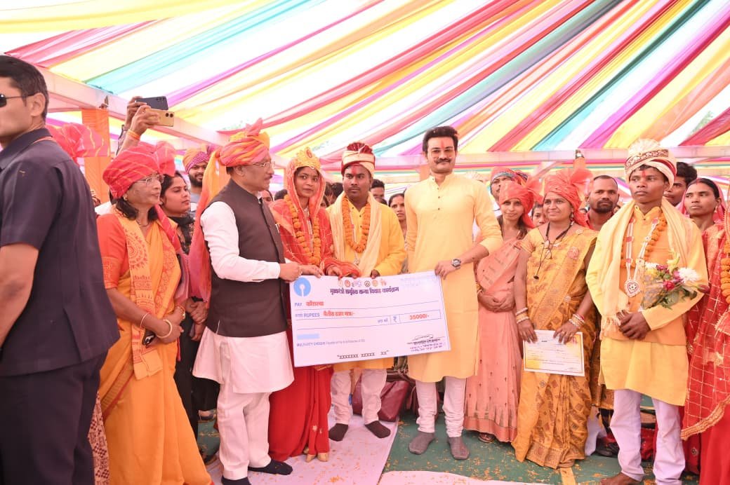 मुख्यमंत्री श्री साय ने कार्यक्रम के दौरान विवाह मंडप में जाकर प्रत्येक नवदंपति से मुलाकात की। उन्होंने सभी को बधाई देते हुए कहा कि यह योजना गरीब और जरूरतमंद परिवारों के लिए एक संबल है, जो बेटियों के विवाह के आर्थिक बोझ को कम करती है। मुख्यमंत्री ने इस अवसर पर प्रतीकात्मक रूप से हितग्राहियों को 35,000 रुपये की सहायता राशि के चेक भी वितरित किए।