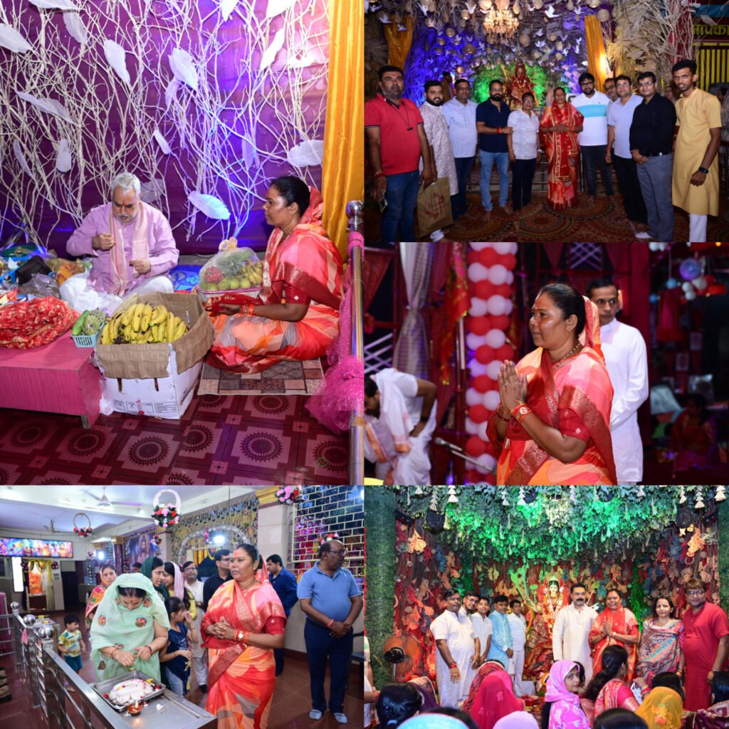 पत्थलगांव। शारदीय नवरात्रि के पावन अवसर पर पत्थलगांव शहर भक्ति और आस्था के रंगों से सराबोर रहा। मंगलवार को क्षेत्र की लोकप्रिय जनप्रतिनिधि एवं सरगुजा विकास प्राधिकरण की उपाध्यक्ष श्रीमती गोमती साय ने शहर के विभिन्न मोहल्लों और वार्डों में स्थापित माता दुर्गा पंडालों का भ्रमण कर माता रानी के दर्शन किए और नगर वासियों की खुशहाली, सुख-समृद्धि तथा क्षेत्र की उन्नति के लिए आशीर्वाद माँगा।