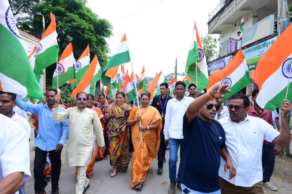 इसी क्रम में बुधवार को पत्थलगांव नगर में विधायक निवास कार्यालय से, सरगुजा आदिवासी विकास प्राधिकरण उपाध्यक्ष एवं क्षेत्रीय विधायक श्रीमती गोमती साय की उपस्थिति में नगर के तीनों मुख्य मार्गों से “भव्य तिरंगा यात्रा” निकाली गई। इसी प्रकार कांसाबेल और लुड़ेग में भी हर घर तिरंगा अभियान के तहत उत्साहपूर्वक तिरंगा यात्राओं का आयोजन किया गया, जिसमें स्थानीय जनप्रतिनिधि, अधिकारी, विद्यालय के छात्र-छात्राएं और बड़ी संख्या में नागरिक शामिल हुए।