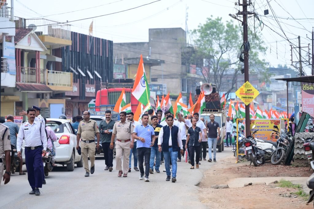 विधायक श्रीमती गोमती साय ने अपने संबोधन में कहा —”आज़ादी के अमृत महोत्सव के तहत बीते चार वर्षों से ‘हर घर तिरंगा, घर घर तिरंगा’ अभियान पूरे देश में उत्साह के साथ चलाया जा रहा है। इस अभियान का उद्देश्य भारतवासियों के हृदय में देशभक्ति की भावना को जागृत करना और राष्ट्रीय ध्वज के प्रति सम्मान बढ़ाना है। आज पत्थलगांव के नागरिकों के साथ इस भव्य यात्रा में शामिल होकर गौरव की अनुभूति हो रही है।”