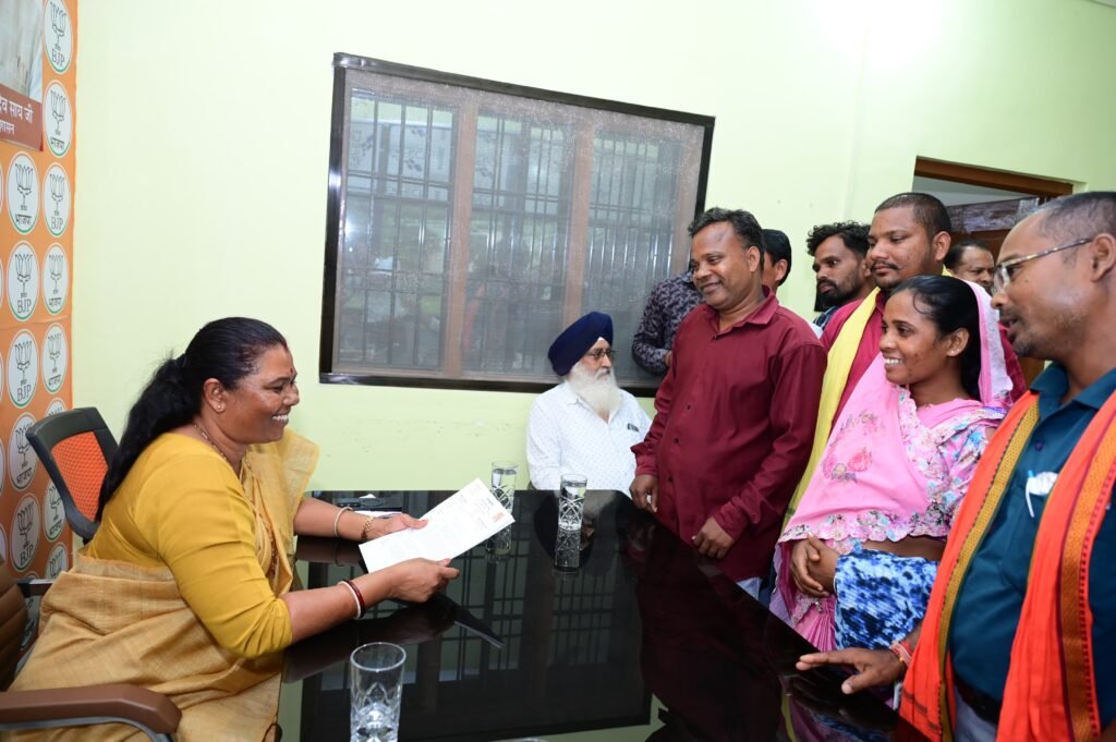 पत्थलगांव।आज पत्थलगांव विधायक एवं सरगुजा विकास प्राधिकरण की उपाध्यक्ष श्रीमती गोमती साय ने विधायक निवास/कार्यालय में आयोजित जनदर्शन कार्यक्रम में क्षेत्र की जनता से भेंट की। इस दौरान ग्रामीणों ने अपनी विभिन्न समस्याएँ रखीं, जिनका समाधान विधायक ने मौके पर ही किया।